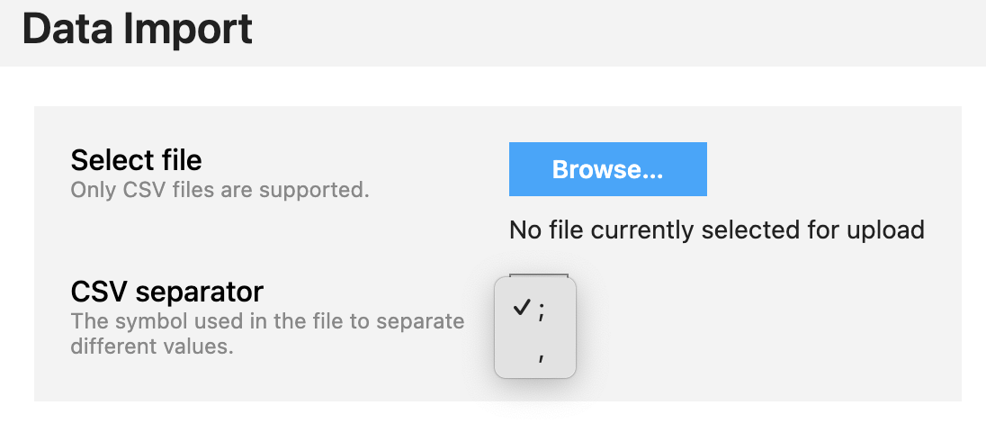 - Select the CSV separator. This is the symbol used to separate column values in plain text format Make sure it matches the separator used in the CSV Template.